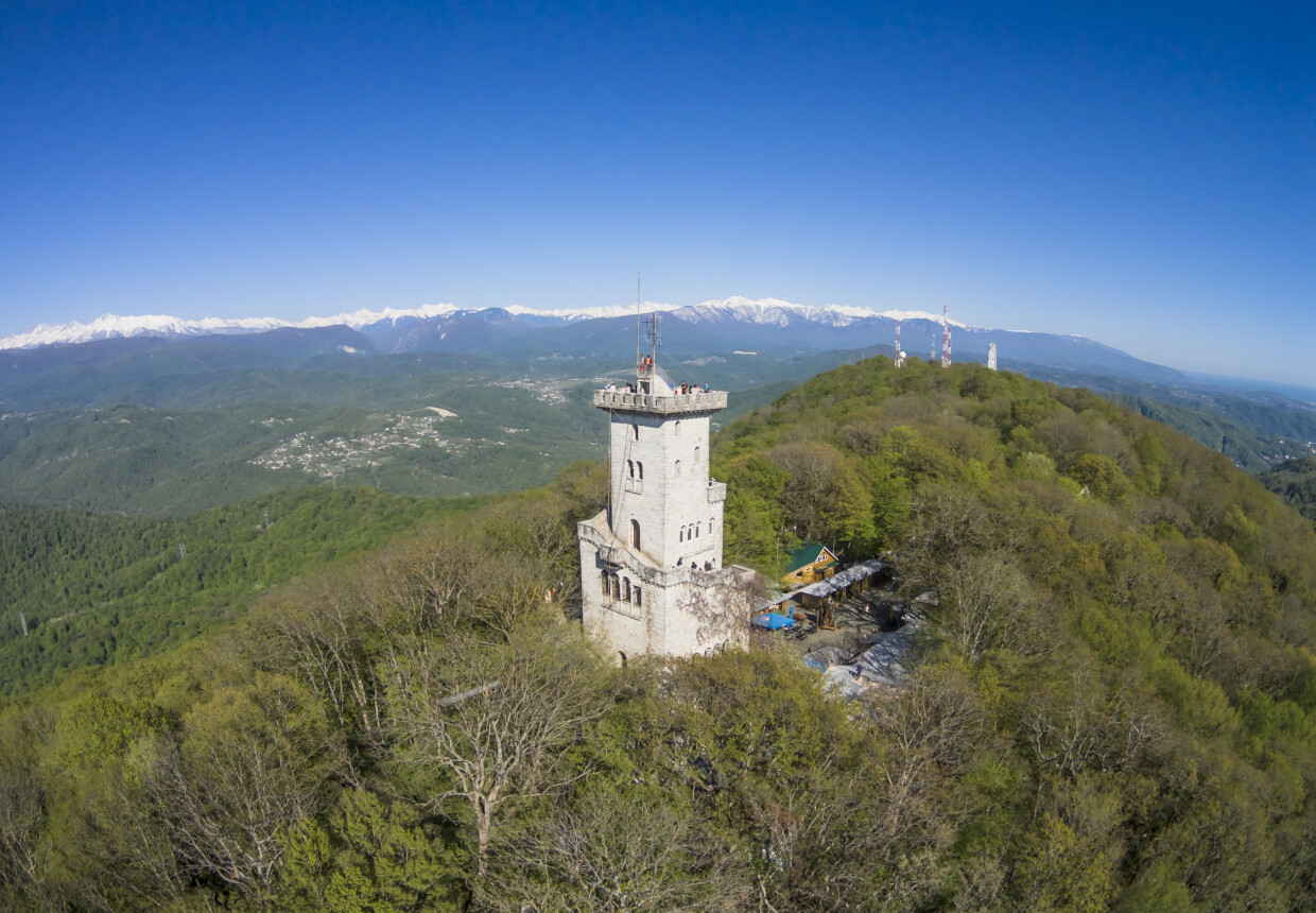 На западной стороне вы можете видеть долину реки Хоста и Агурское ущелье, Орлиные скалы и ровные ряды плантаций мацестинского чая. С другой стороны практически к самой башне подходит граница Кавказского заповедника, в частности его знаменитая Тисо-самшитовая роща.